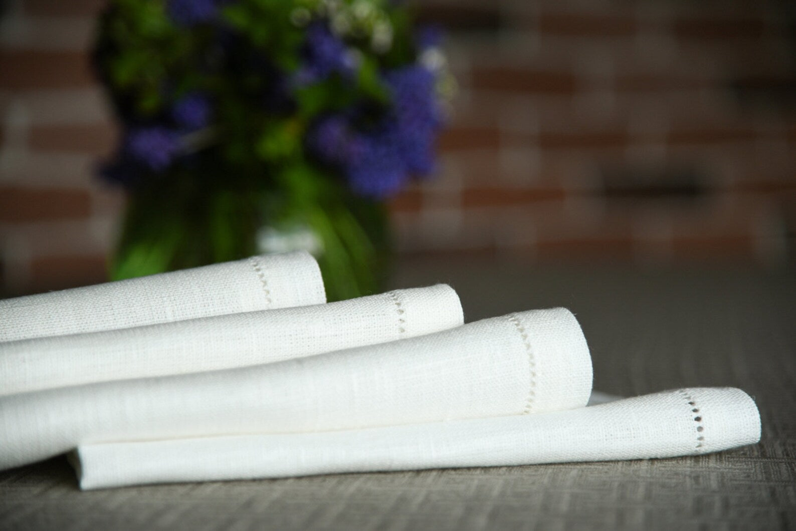 🌿Bring classic beauty to your meals with these white linen dinner napkins crafted from premium European linen. Each napkin measures 17×17 in (43×43 cm) and features an understated yet refined hemstitched finish — an elegant detail that frames your place setting with craftsmanship and care.